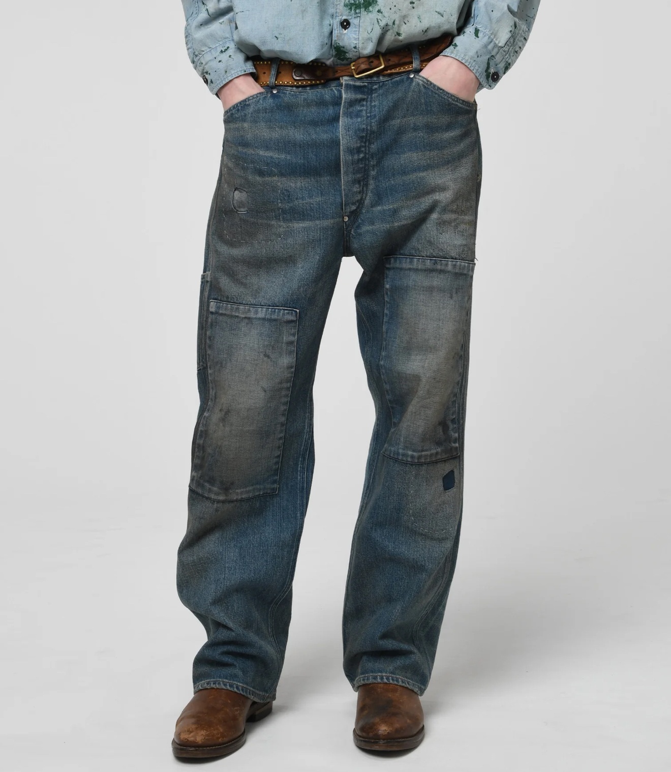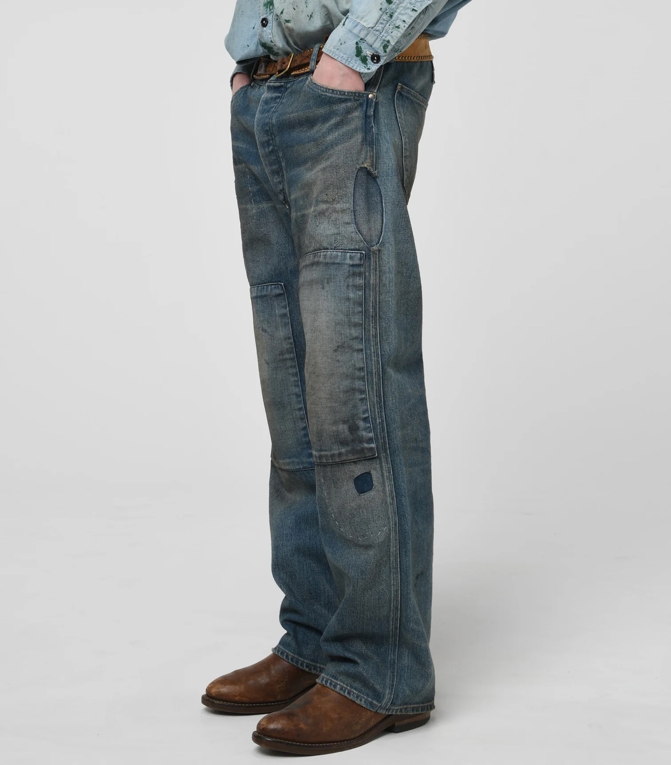 履きこまれた色落ちやアタリ、リペアの数々は、まるで坑道を歩んだ鉱夫たちの足跡を刻むように製作。