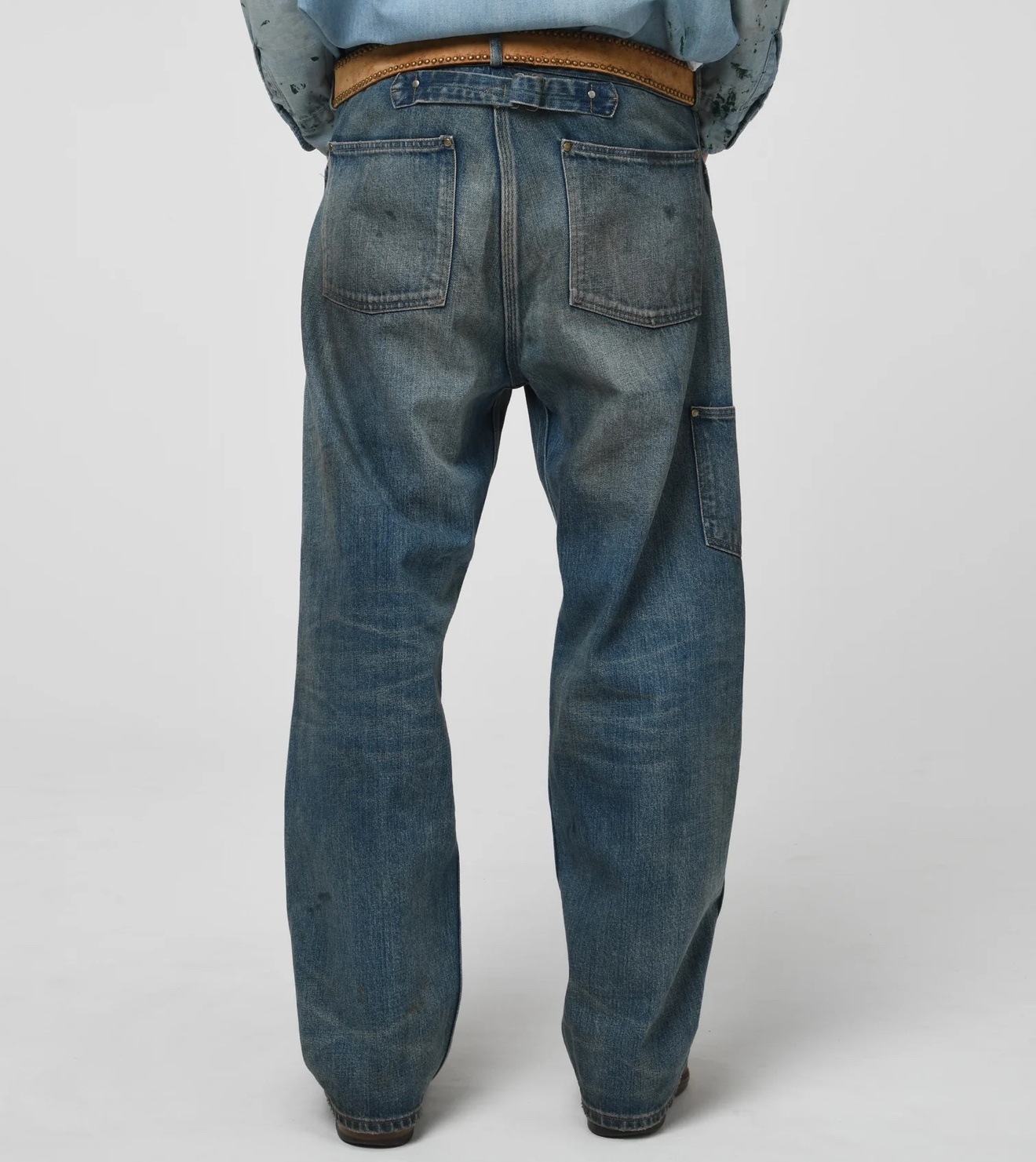 無骨なデニム、補強リベット、ステッチに加え、ウエストのフィット感を調整できるシンチバックを装備。