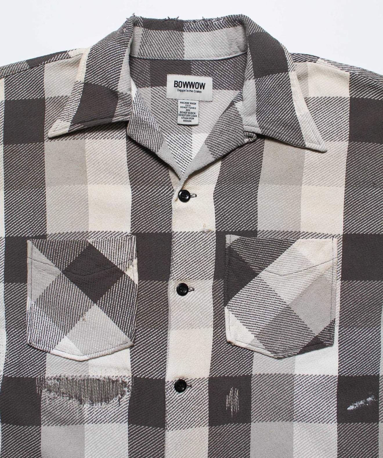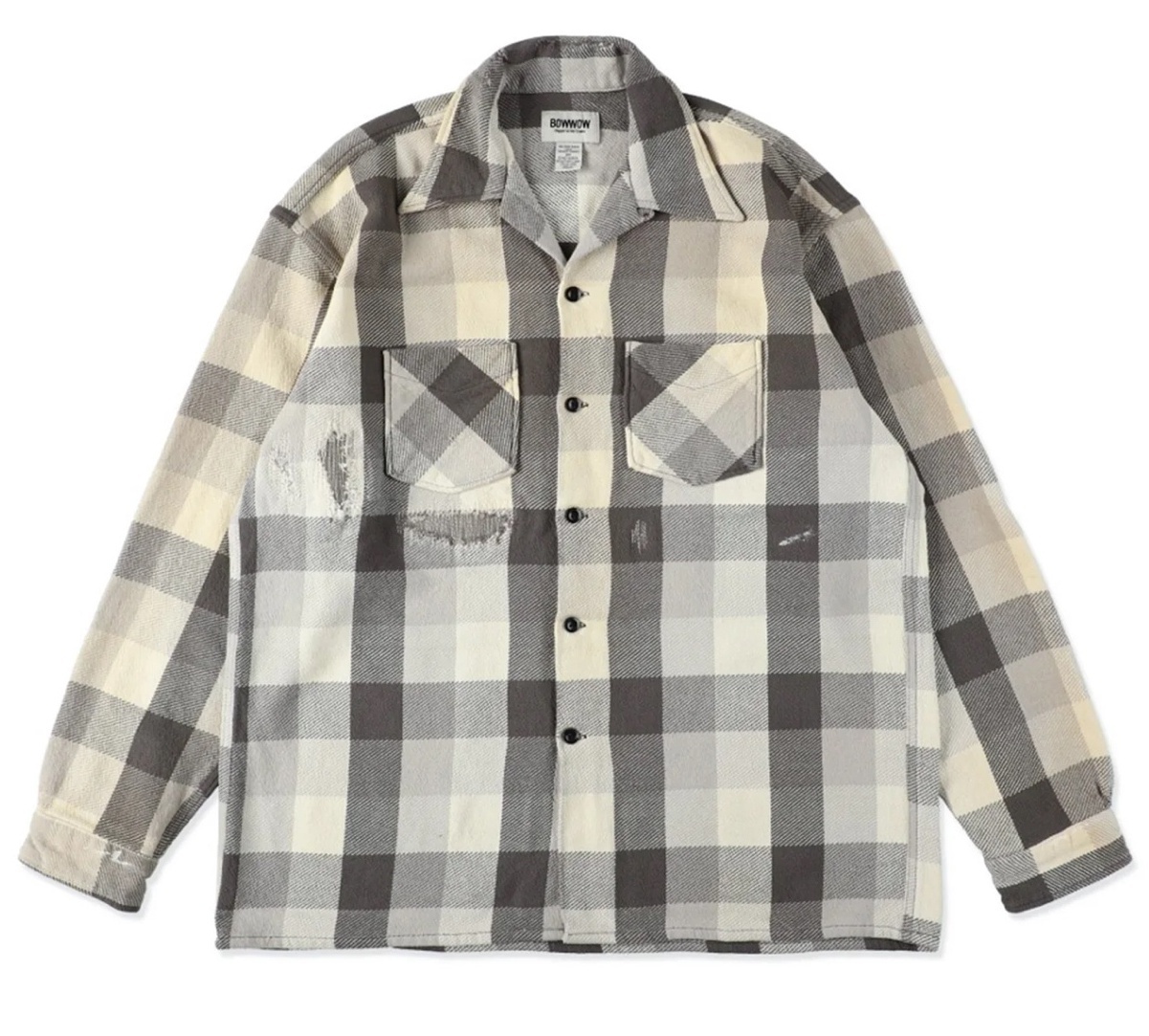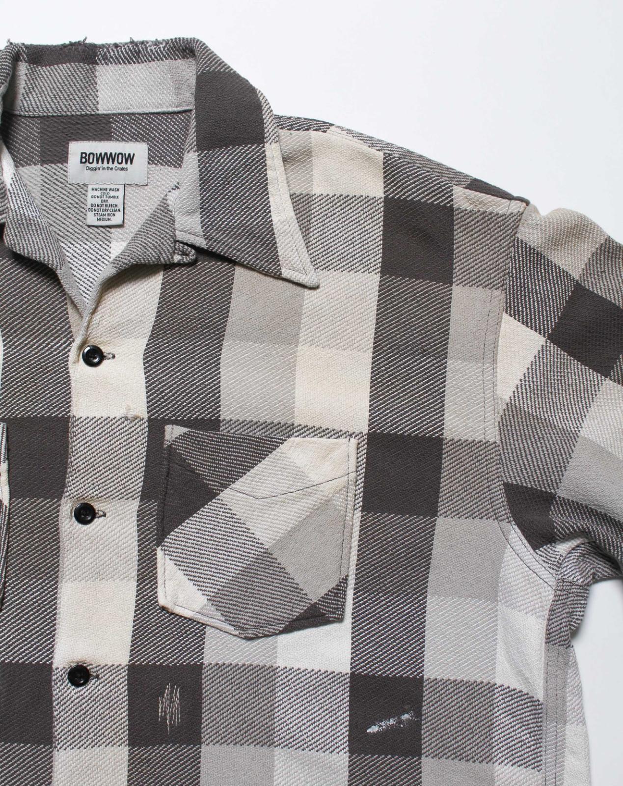 BOW WOW <バウワウ> / DAMAGED AND STAINED FLANNEL SHIRT(ネルシャツ) / エイジド グレー x ホワイト