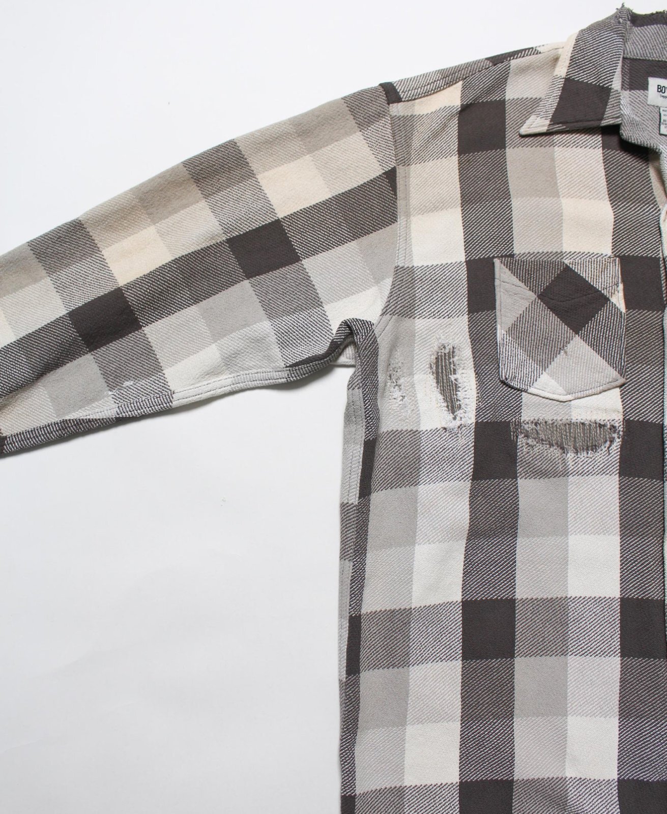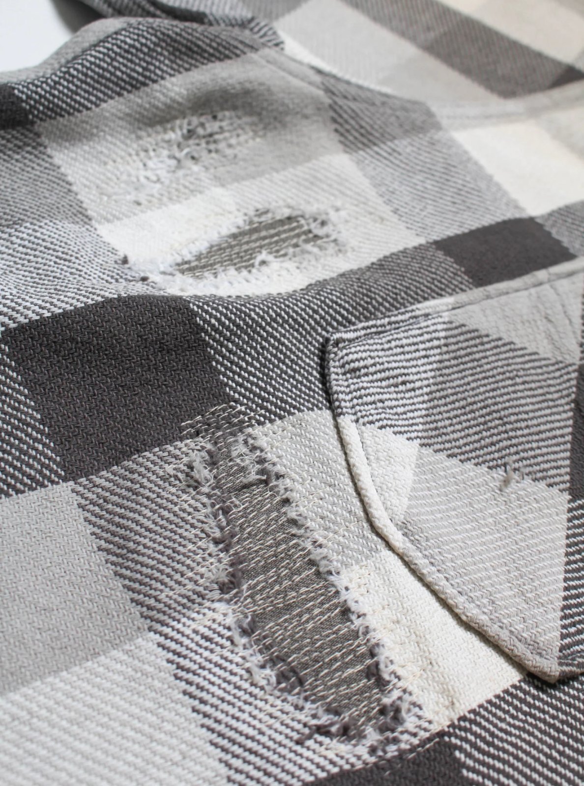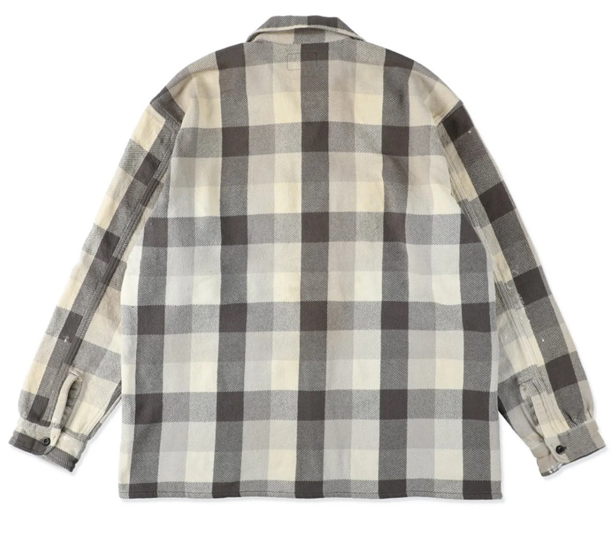 BOW WOW <バウワウ> / DAMAGED AND STAINED FLANNEL SHIRT(ネルシャツ) / エイジド グレー x ホワイト
