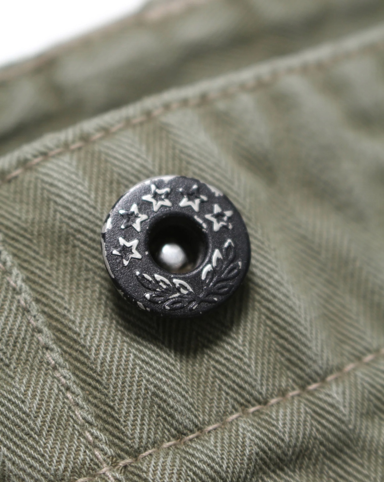 USMC採用のP-44 HBT TROUSERSをベースに再構築。