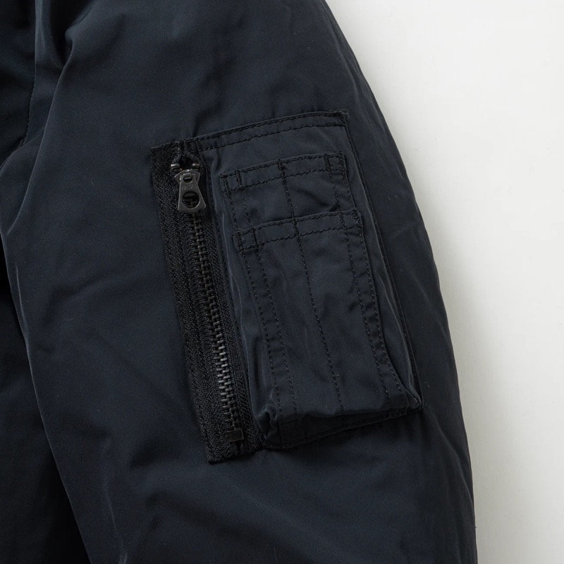 マットな質感、撥水性に富むオリジナルで作成したポリエステル生地を使用したRATSのMA-1ジャケットです。