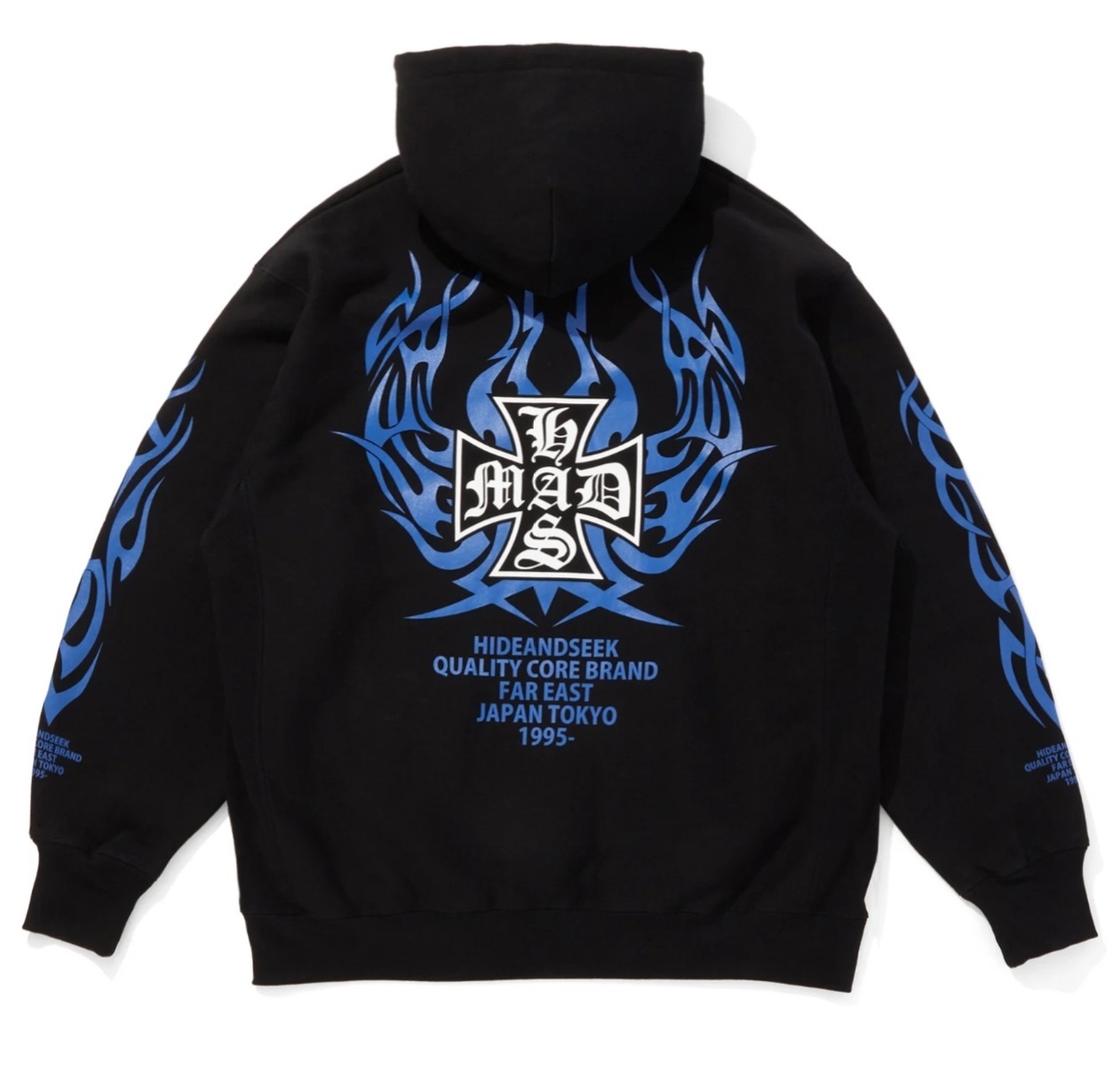 HIDE AND SEEK <ハイドアンドシーク> / MAD Hooded Sweat Shirt(スウェットパーカー) / ブラック x ブルー [HC-110825]