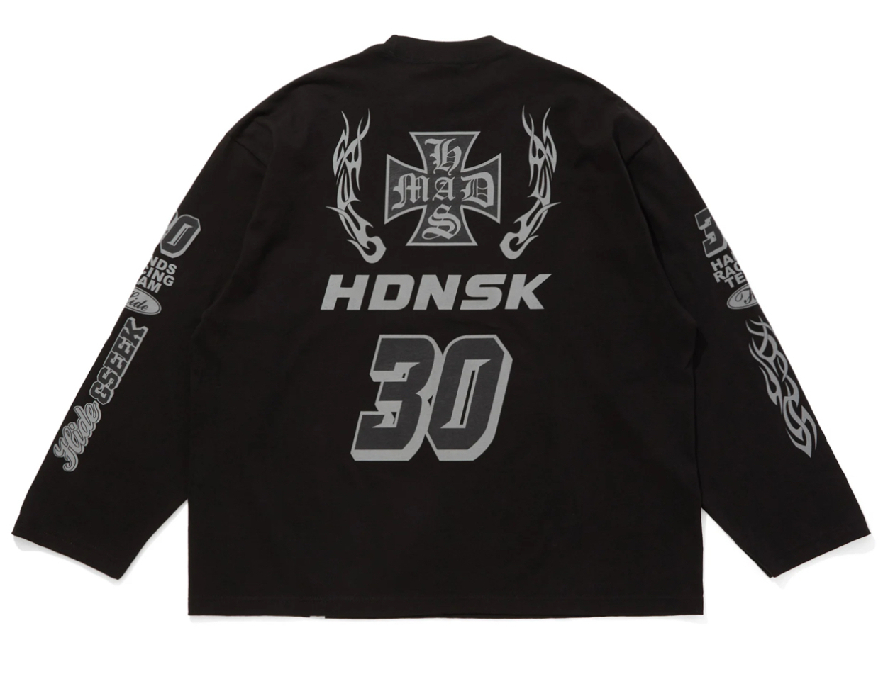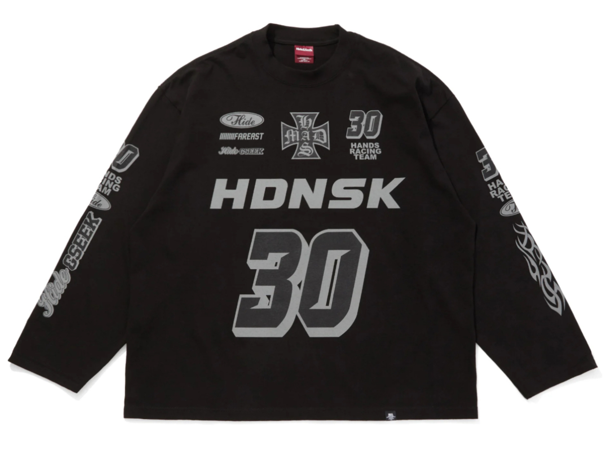 HIDE AND SEEK <ハイドアンドシーク> / Racing L/S Tee(Loose Fit)(ロングスリーブTシャツ) / ブラック [HT-070325]