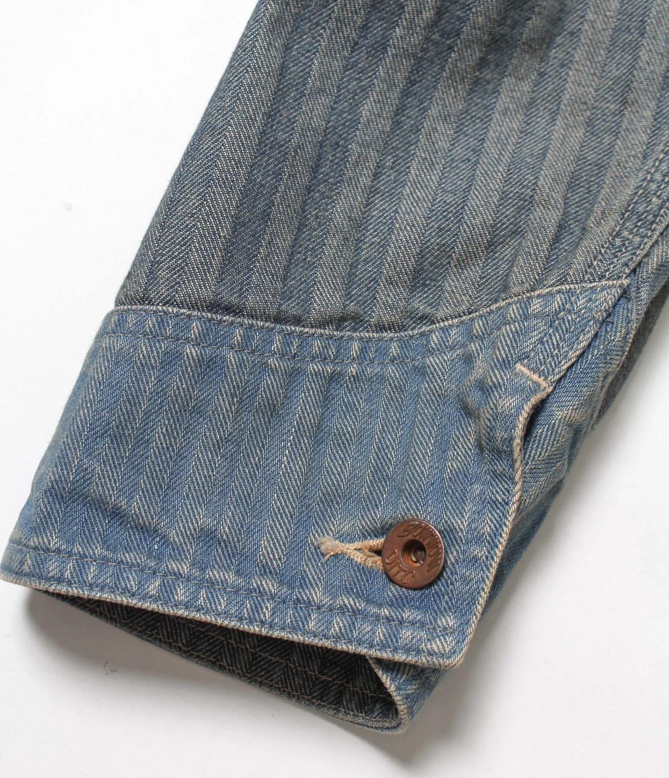 40〜50年代に見られるショートワークジャケットの代表的な形をベースに、インディゴヘリンボーン生地で製作。