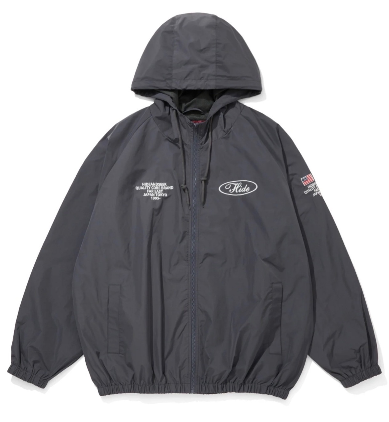 HIDE AND SEEK <ハイドアンドシーク> / Nylon Zip Hooded Jacket(26ss)(ナイロンパーカー) / チャコールグレー [HJ-010226]