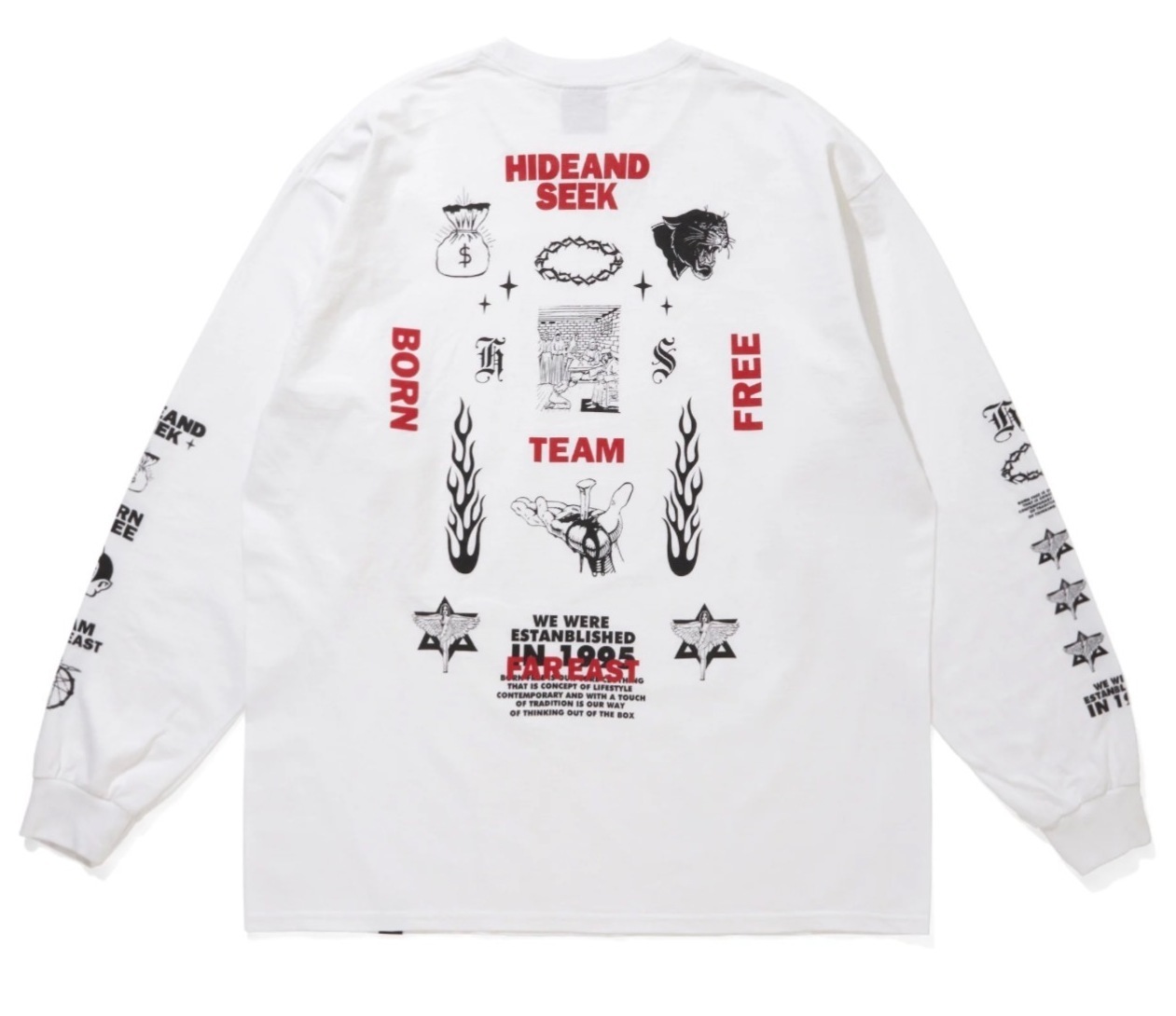 HIDE AND SEEK <ハイドアンドシーク> / TEAM FAR EAST L/S Tee(ロングスリーブTシャツ) / ホワイト [HT-021026]