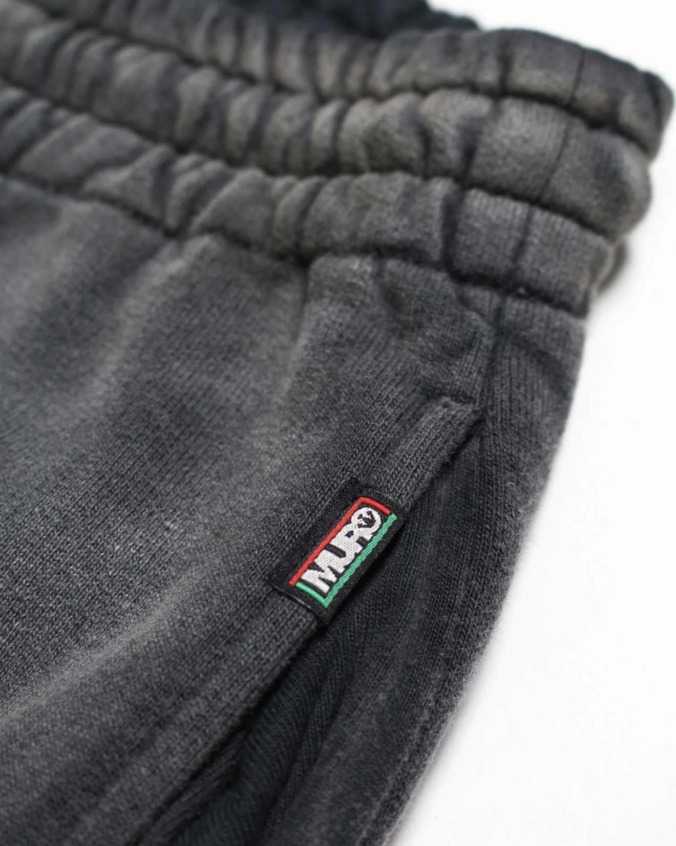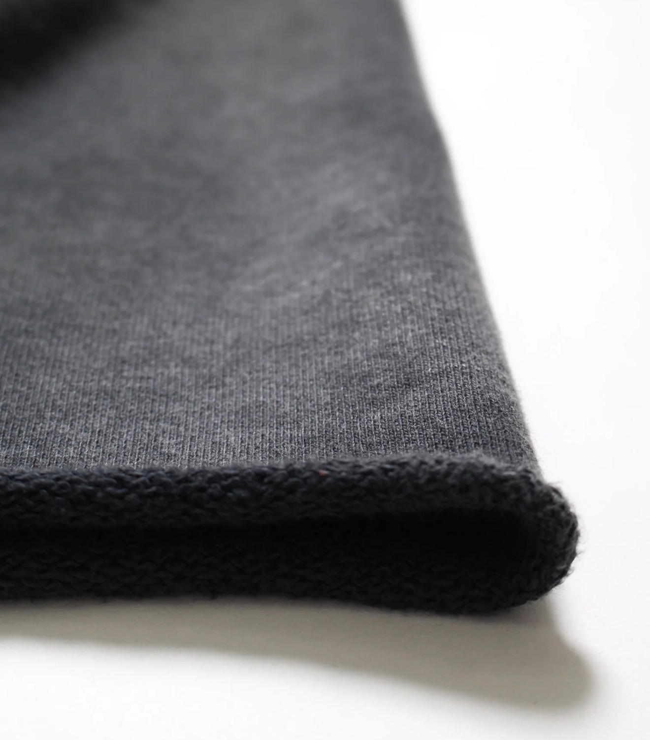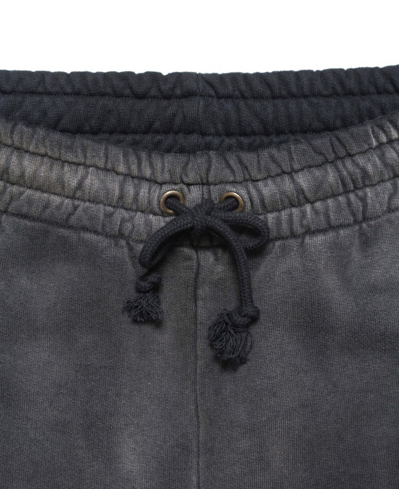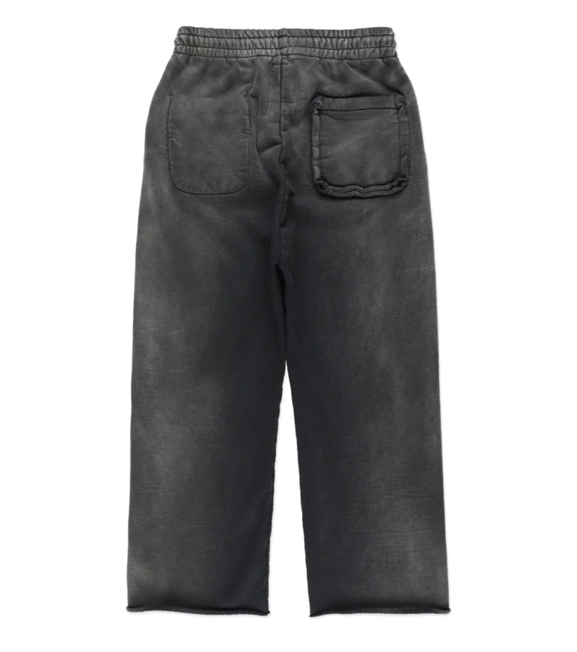 股上を深く取ったスラックスライクなシルエットと、切りっ放しの裾が古いスウェットの空気感を残している。