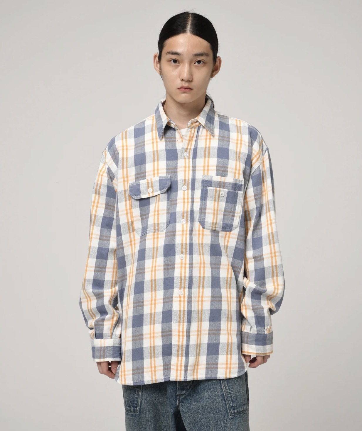 BOW WOW <バウワウ> / UNIQUE POCKET CHECKED FLANNEL SHIRT(ネルシャツ) / イエロー x ブルー