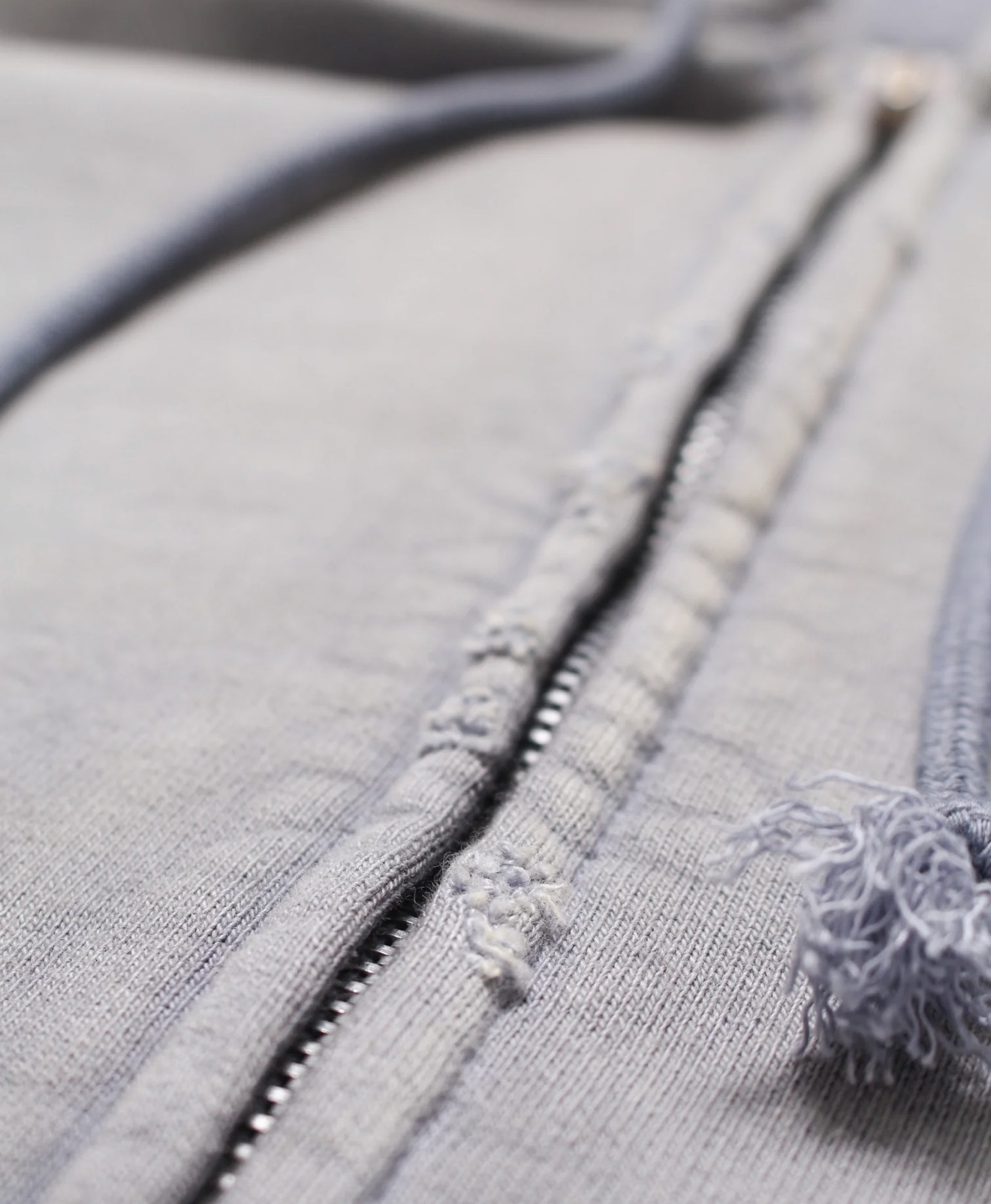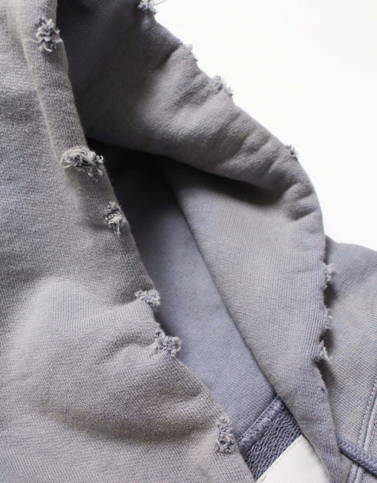着用と洗いを重ねてきたかのようなリアルな加工表現を加え、ラフさの中に芯のある佇まいを持たせている。