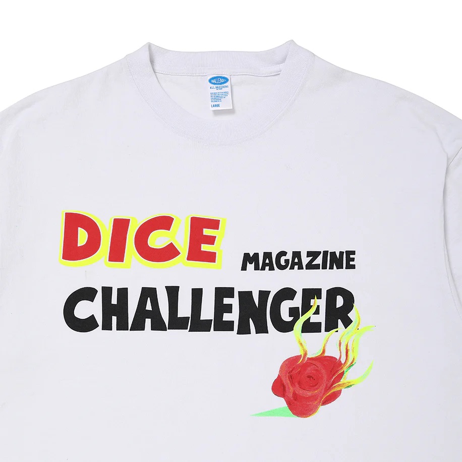 CHALLNGERとDICE MAGAZINEのダブルネームのTシャツです。