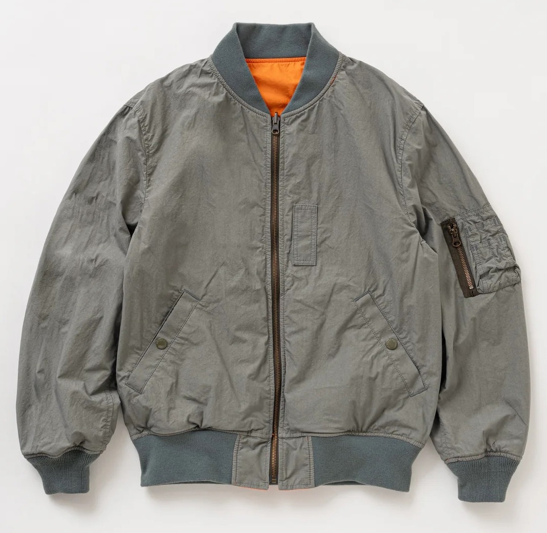 オリジナルで染色したコットンタイプライター素材を使用したRATSのMA-1ジャケットです。