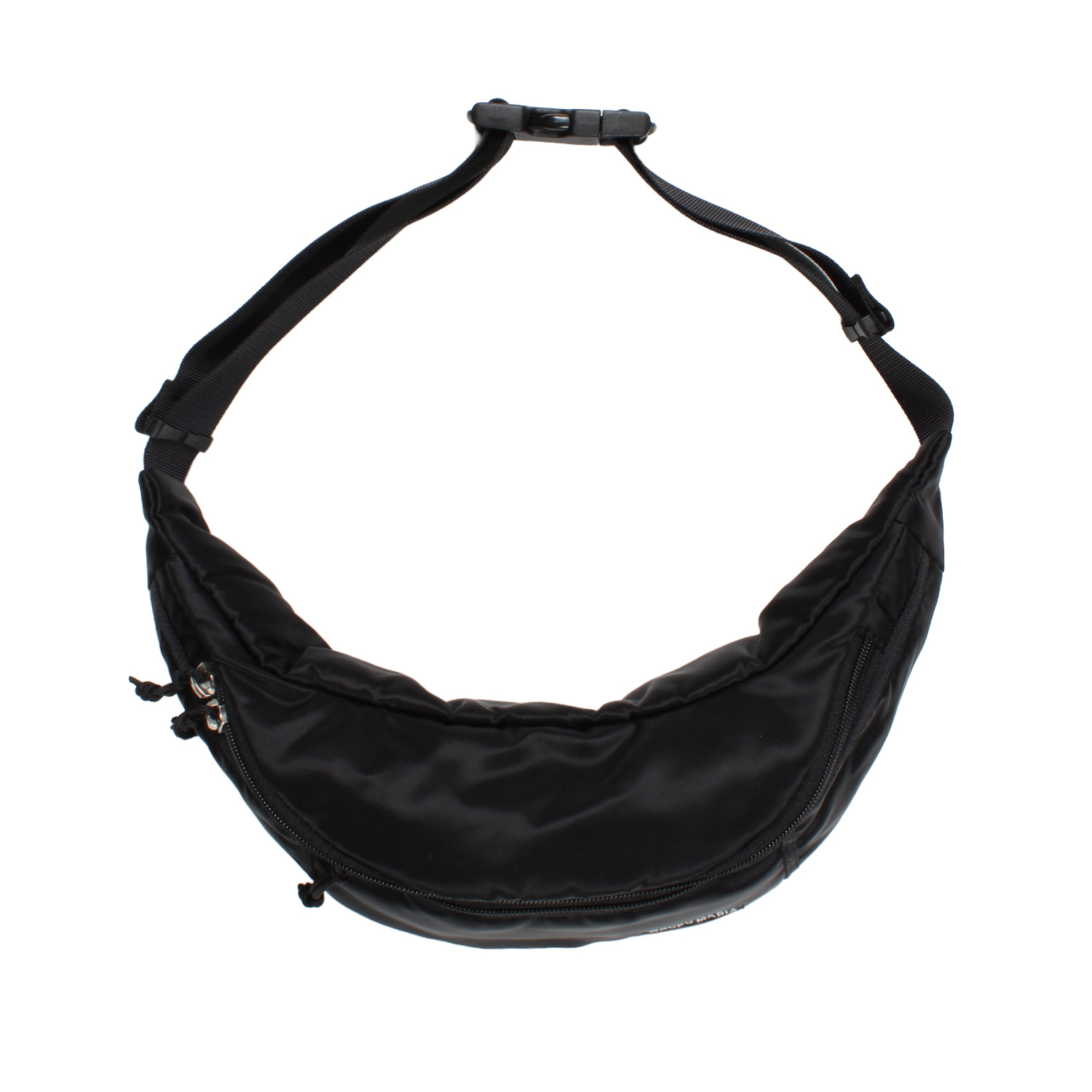 光沢のあるナイロン生地を使用したウエストバッグになります。