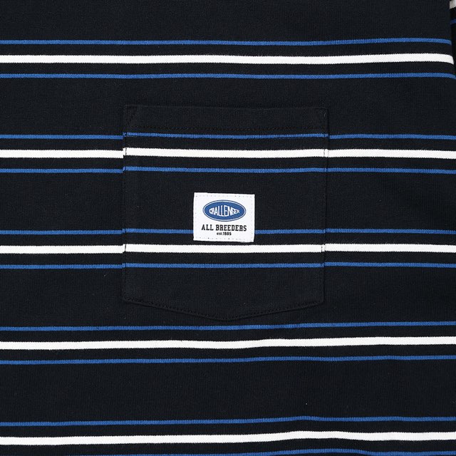 変則的なボーダー柄とポケットに付いたタグがポイントです。